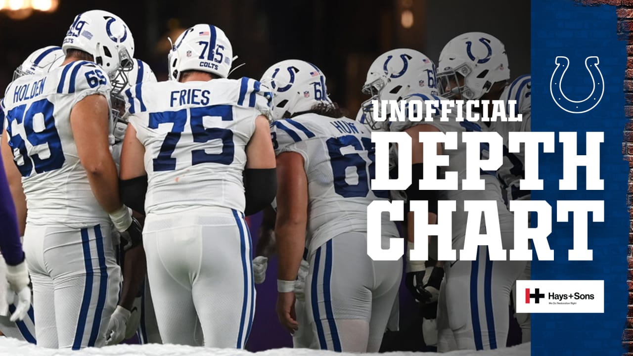 2021 Indianapolis Colts depth chart for all positions. Earned Honorable Mention All- Big 10 honors in both 2018 and 2019 second-team in 2020. Baltimore Ravens The Colts released their Week 5 unofficial depth chart ahead of Monday nights game against the Baltimore Ravens.